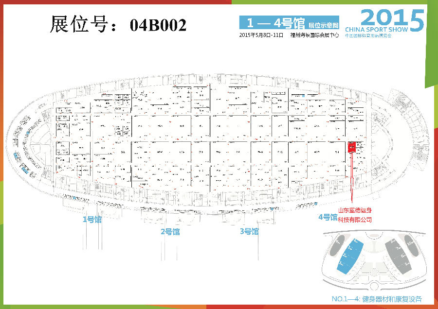 由国家体育总局、中国体育用品业联合会主办,国家体育总局体育器材装备中心、福建省体育局、福州市人民政府共同承办的2015年(第33届)中国国际体育用品博览会,已定于2015年5月8日~11日在福州海峡国际会展中心举办。 山东leyu.乐鱼健身科技有限公司将参与本次博览会,场馆区域为4馆B002号,届时将展出我们新型的跑步机,力量器械,运动单车等产品,欢迎各位新老客户参观,leyu.乐鱼健身全体员工将竭诚为您服务。